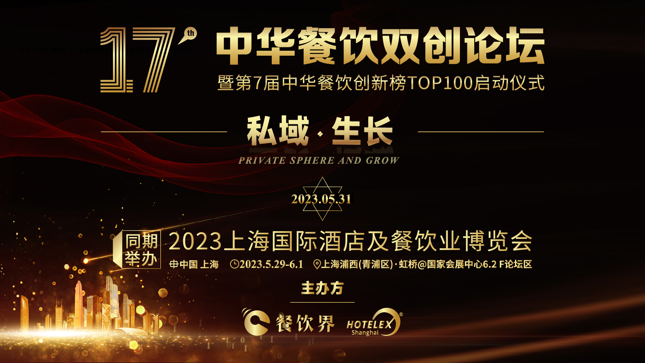 2023年5月31日,餐飲界新媒體持續(xù)打造“中華餐飲雙創(chuàng)論壇”IP,將于上海國家會展中心舉辦“私域-生長”暨2023第17屆中華餐飲雙創(chuàng)論壇。
