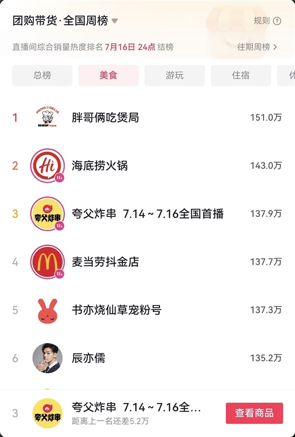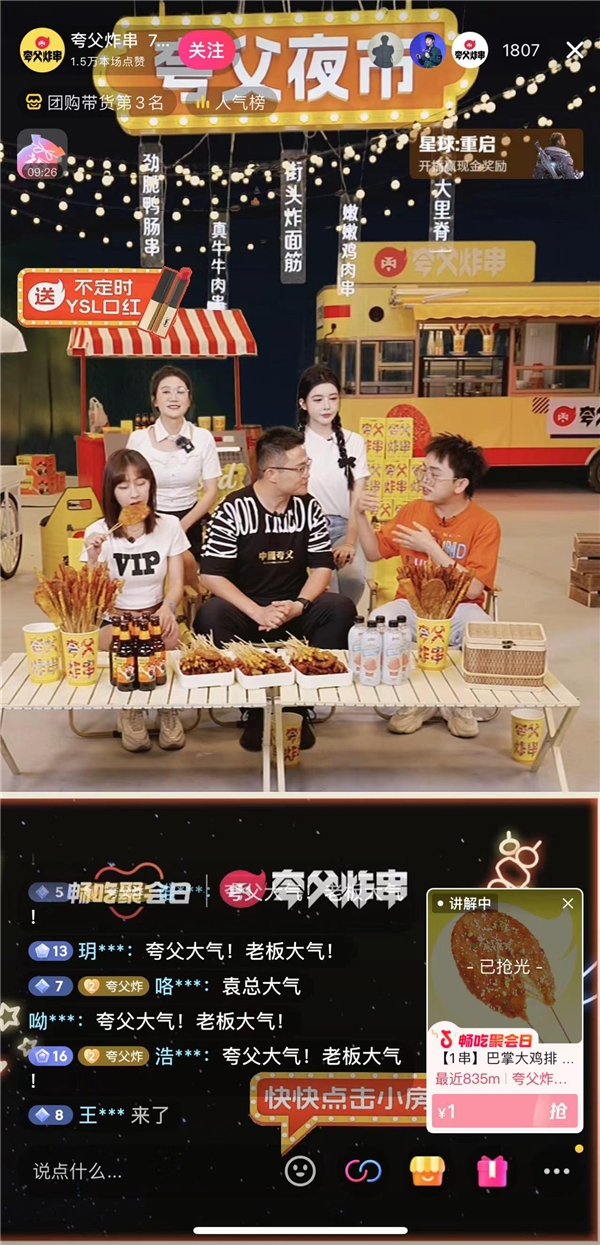 一組數(shù)據(jù)正驗(yàn)證消費(fèi)者、特別是年輕消費(fèi)群體對(duì)于夸父炸串的信任,前不久的抖音「暢吃聚會(huì)日」聯(lián)合夸父炸串,開展了一場(chǎng)以夜市為主題的沉浸式場(chǎng)景直播,創(chuàng)造了36小時(shí)累計(jì)成交額突破1766萬的成績,累計(jì)在線觀看人數(shù)超過100萬,成為抖音本地生活小吃快餐人氣榜TOP1品牌,也是全國美食周榜前三品牌。
