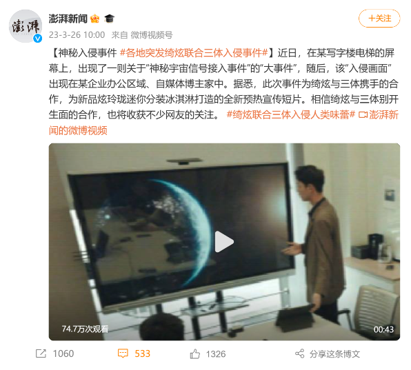 整體回顧近幾個(gè)月冰淇淋類產(chǎn)品在各類媒體上發(fā)布的信息,可以發(fā)現(xiàn),綺炫上市以來(lái)通過(guò)大屏、梯媒等戶外媒體結(jié)合主流長(zhǎng)、短視頻平臺(tái)全面覆蓋了目標(biāo)消費(fèi)者的衣食住行。在此基礎(chǔ)上,綺炫跨界小米、聯(lián)動(dòng)三體IP、聯(lián)合當(dāng)紅明星宋軼開(kāi)啟“打卡愛(ài)麗絲最愛(ài)冰淇淋”等創(chuàng)意豐富的打卡活動(dòng),讓品牌影響力滲透不同圈層。在小紅書上,綺炫身影也經(jīng)常出現(xiàn),在淄博燒烤、520等時(shí)間節(jié)點(diǎn)和熱點(diǎn)事件期間通過(guò)KOC與消費(fèi)者積極互動(dòng),推動(dòng)種草效果的社交裂變。系列活動(dòng)總曝光量超過(guò)3.7億次,并沉淀了大量?jī)?yōu)質(zhì)原創(chuàng)筆記,形成傳播長(zhǎng)尾。