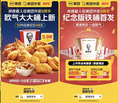 在剛剛過(guò)去的8月,國(guó)內(nèi)餐飲業(yè)經(jīng)歷一場(chǎng)熱鬧的暑期消費(fèi)季。為了進(jìn)一步助力品牌在暑期的增長(zhǎng),美團(tuán)外賣(mài)拳頭單品牌營(yíng)銷(xiāo)IP“超級(jí)發(fā)布”攜手西式快餐頭部品牌肯德基,抓住熱點(diǎn)機(jī)會(huì),展開(kāi)了以“潛客轉(zhuǎn)新,老客提頻”為核心目標(biāo)的“肯德基入駐美團(tuán)外賣(mài)8周年”大促營(yíng)銷(xiāo)活動(dòng)。