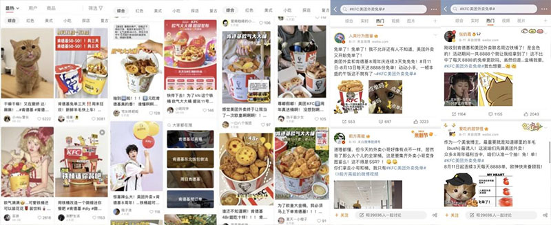 除新品以外,活動(dòng)還推出美團(tuán)外賣(mài)與肯德基聯(lián)合定制的“8周年紀(jì)念桶周邊”。周邊以高顏值、高實(shí)用性強(qiáng)勢(shì)出圈,用高顏值和意外的“反差萌”,撬動(dòng)各圈層;而其本身自帶的“歐氣”玩法,符合近幾年頗受年輕人熱愛(ài)的“抽卡”、“玄學(xué)”、“盲盒”理念,切中年輕人興趣點(diǎn)。同時(shí),美團(tuán)外賣(mài)聯(lián)合小紅書(shū)、微博平臺(tái)上不同領(lǐng)域博主,以周邊為核心物料,輻射顏值、生活、郊游、萌寵、手工、手作等多個(gè)圈層,成功打造多個(gè)爆款筆記,引發(fā)粉絲打卡熱潮,成功吸引一波網(wǎng)友自來(lái)水傳播以及對(duì)周邊“全網(wǎng)求桶”的追捧。