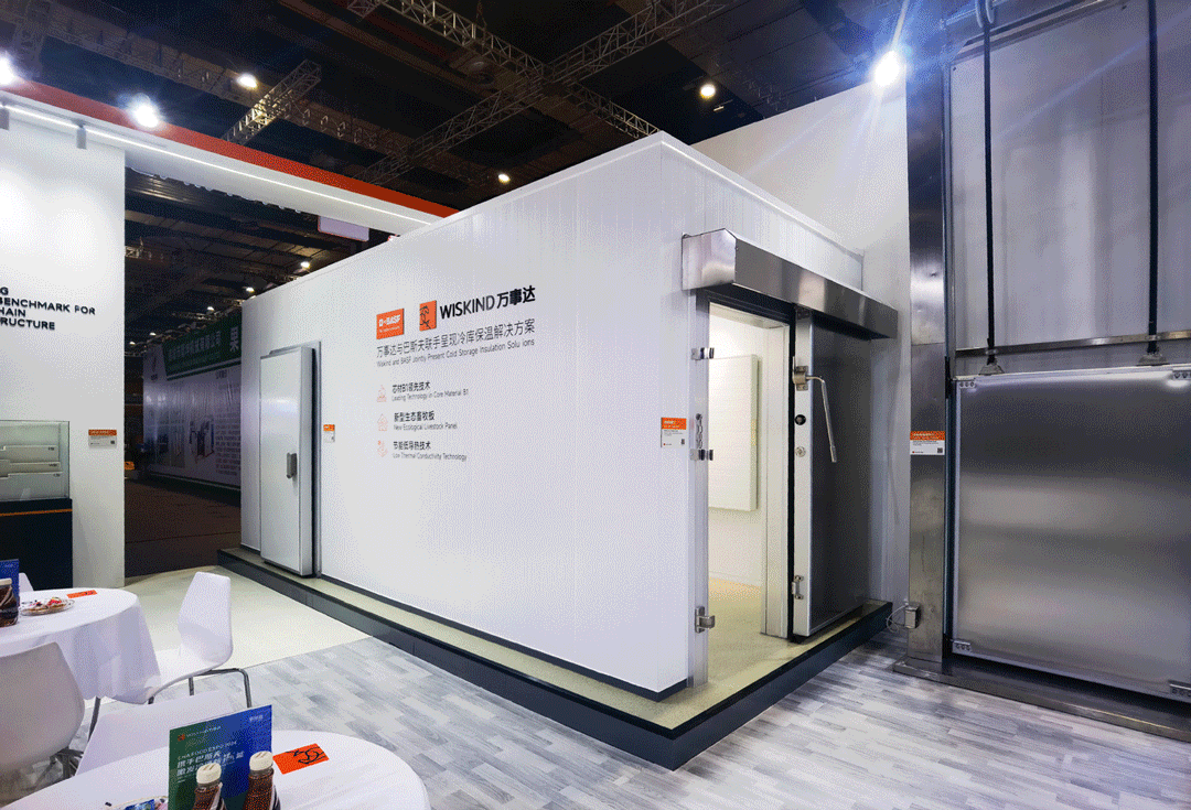 本次展會中,給大家?guī)砹艘豢钚乱淮郯滨ダ鋷彀濉惒示?聚氨酯冷庫板,該產(chǎn)品是萬事達(dá)與巴斯夫共同打造,專門為應(yīng)對食品加工、冷鏈物流等行業(yè)痛點而研發(fā)的最新產(chǎn)品。同時,其展出的冷庫樣板房、聚氨酯隱釘外墻板、冷庫保溫門等系列產(chǎn)品,吸引了大量游客駐足參觀。