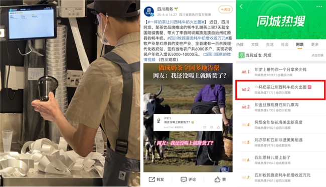應(yīng)邀消費者期待,喜茶于今年3月限時全國上線「雪域·牦牛乳恰安莫」,在上架一周后便因熱銷陸續(xù)售罄,帶動產(chǎn)品原料牦牛乳多個相關(guān)討論話題登上四川同城熱搜,更引發(fā)全國各地的消費者在社交媒體上集體搜尋產(chǎn)品蹤跡。為滿足廣大用戶的返場期待,喜茶深入產(chǎn)品特色原料牦牛乳的供應(yīng)上游,探索區(qū)域奶原料在全國范圍內(nèi)廣泛供應(yīng)的可能性。