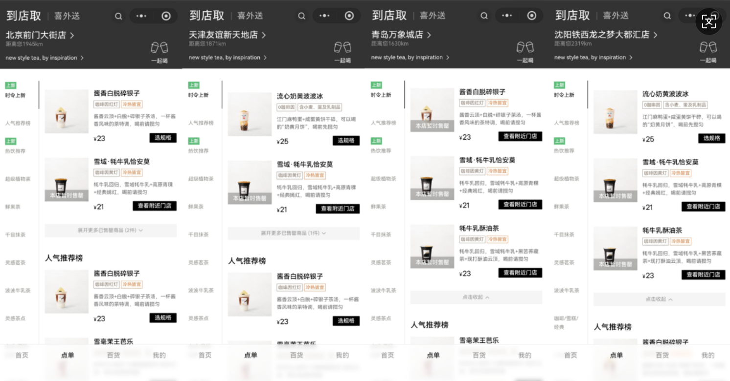 近日,喜茶于不久前剛剛回歸的人氣產(chǎn)品「雪域·牦牛乳恰安莫」,在上架10日后陸續(xù)出現(xiàn)售罄情況,北京、天津、青島、濟(jì)南、西安、沈陽、上海等城市不少門店內(nèi)均已顯示臨時下架,引發(fā)大量消費者討論。