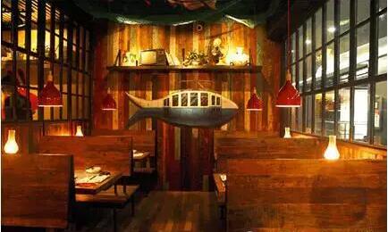 探魚店內(nèi)的所有軟裝擺飾走的都是“懷舊”風(fēng),無論是燈光、擺件,還是樓梯、桌椅,都將文藝和懷舊嵌在了骨頭縫里,燈光是迷離的,菜單是卡通的,壁畫是涂鴉的,陳設(shè)是懷舊的,餐具是萌萌噠,就連菜品都由內(nèi)而外散發(fā)著復(fù)古風(fēng)。