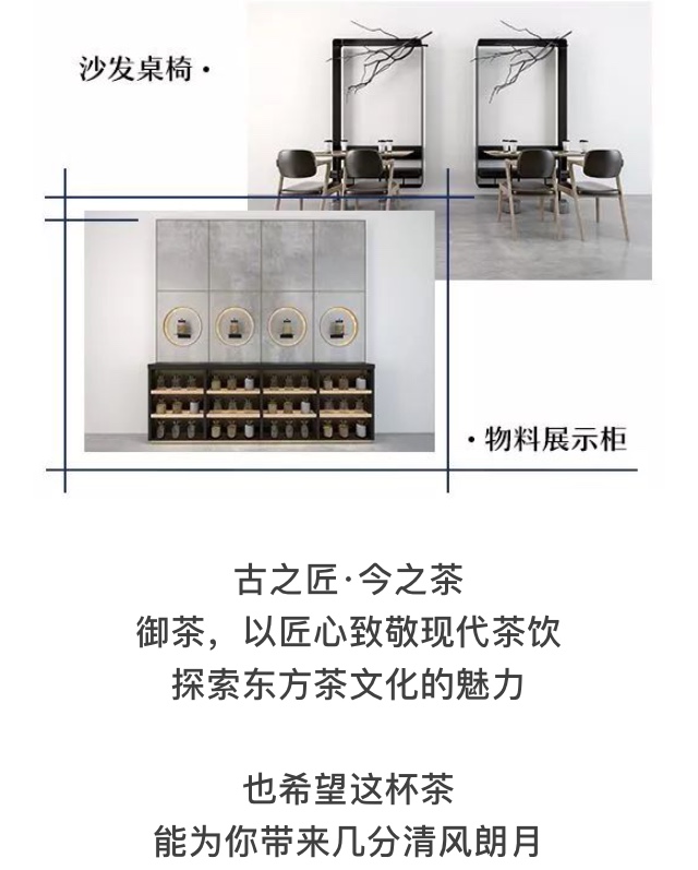 懷著對(duì)東方文化的崇敬與熱愛(ài),創(chuàng)始人將『天圓地方、天人合一』融入御茶的門店設(shè)計(jì)理念中,中國(guó)幾千年的文化古韻以嶄新的姿態(tài)融入設(shè)計(jì)里,盡顯端莊、素雅、歸真之氣。