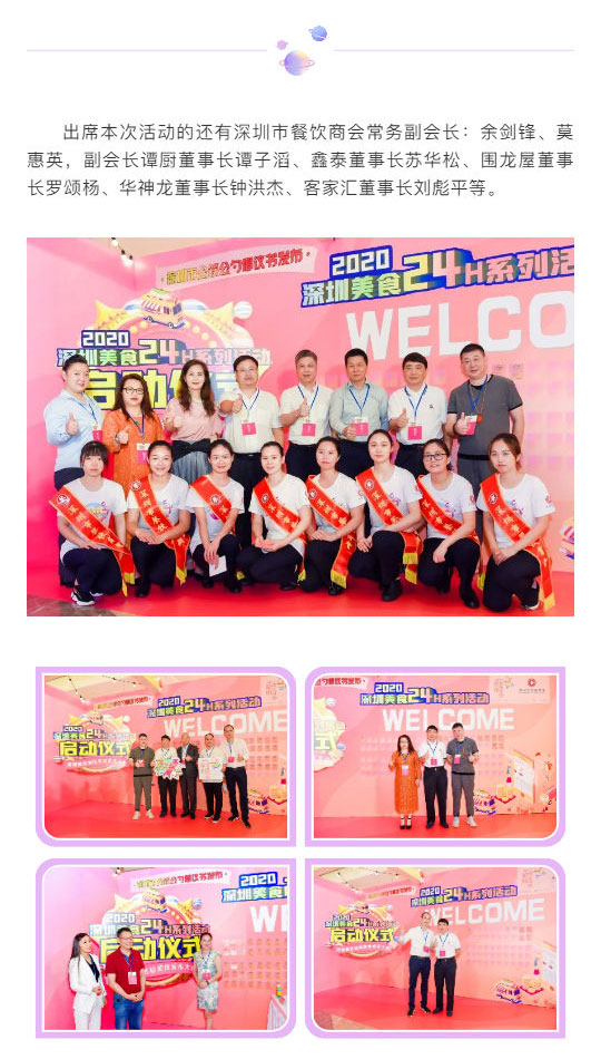 深圳市市場監(jiān)督管理局處長李海平,深圳市商務(wù)局流通市場處正處級調(diào)研員張振強(qiáng),深圳市商務(wù)局服務(wù)貿(mào)易處副處長周林,深圳市傳統(tǒng)優(yōu)勢類行業(yè)協(xié)會聯(lián)合黨委第一書記周偉光、書記吳堅(jiān),深圳市社會組織創(chuàng)新示范基地總干事、總會副秘書長徐輝,中國飯店協(xié)會名廚專業(yè)委員會常務(wù)副主席李順貴,廣東省飲食服務(wù)行業(yè)協(xié)會常務(wù)副會長許可鵬,廣東省餐飲協(xié)會副會長、龍柏資本副董事長艾泊濡,深圳市餐飲商會會長王克明、執(zhí)行會長王英知,深圳市飯店業(yè)協(xié)會執(zhí)行會長王文輝,深圳晚報副總經(jīng)理張璇,寶生銀行總行副行長王霞,平安不動產(chǎn)建設(shè)運(yùn)營中心商場管理部商場運(yùn)營總監(jiān)(兼深圳平安金融中心商場運(yùn)營副總經(jīng)理)肖濤、深圳平安商用置業(yè)投資有限公司總經(jīng)理陳征等相關(guān)領(lǐng)導(dǎo)及餐飲企業(yè)董事長、企業(yè)高層和各大媒體代表出席了啟動儀式。
