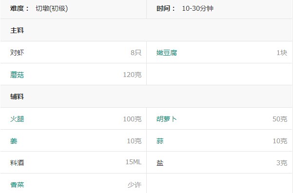 1. 準備食材:對蝦剪去須,背部開刀去除黑線,火腿切薄片,嫩豆腐切塊,蘑菇切片,胡蘿卜削皮切片。