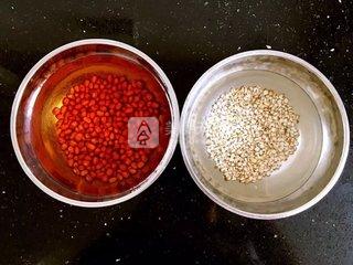 1、紅豆和薏米提前用水浸泡三個(gè)小時(shí)。