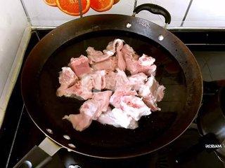 3、排骨洗凈,冷水下鍋焯一下,撈出用溫水泡洗干凈。