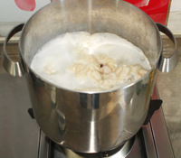 8、將炒過的糖連油一起倒入高壓鍋中。