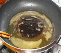 7、炒鍋中倒入適量油,油量比平時炒菜時略多些。待油溫高后放入白糖,炒至糖完全融化。