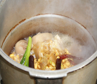11、蓋上鍋蓋,扣上響閥。待響閥響后轉(zhuǎn)中火,燜約15分鐘,關(guān)火。靜置約5分鐘,打開鍋蓋。