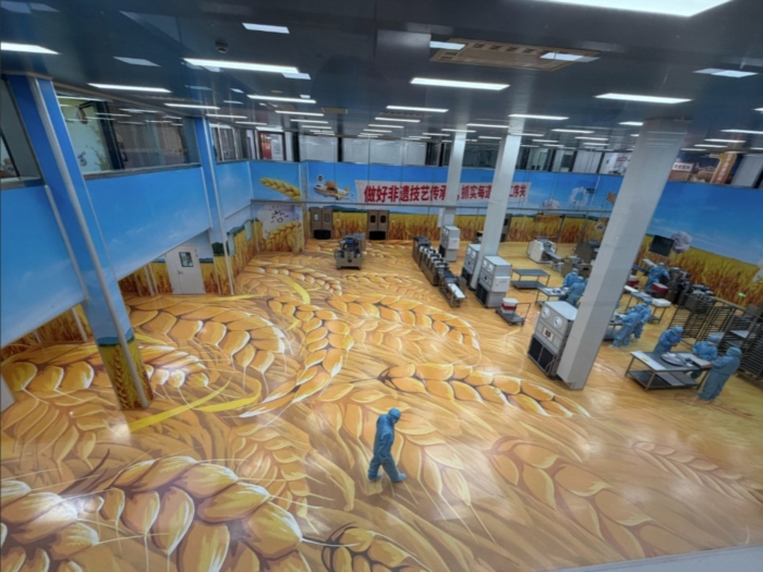 步入生產(chǎn)區(qū),場(chǎng)景悄然轉(zhuǎn)變。以“藍(lán)天白云、金色麥浪”為主題,車間一改常見(jiàn)面貌,還原為女工們熟悉的田間地頭、麥田場(chǎng)景。這既貼近員工的生命記憶、傳遞真切關(guān)懷,也讓每位工作者能以“為家人做早點(diǎn)”的心意,專注對(duì)待手中食材。